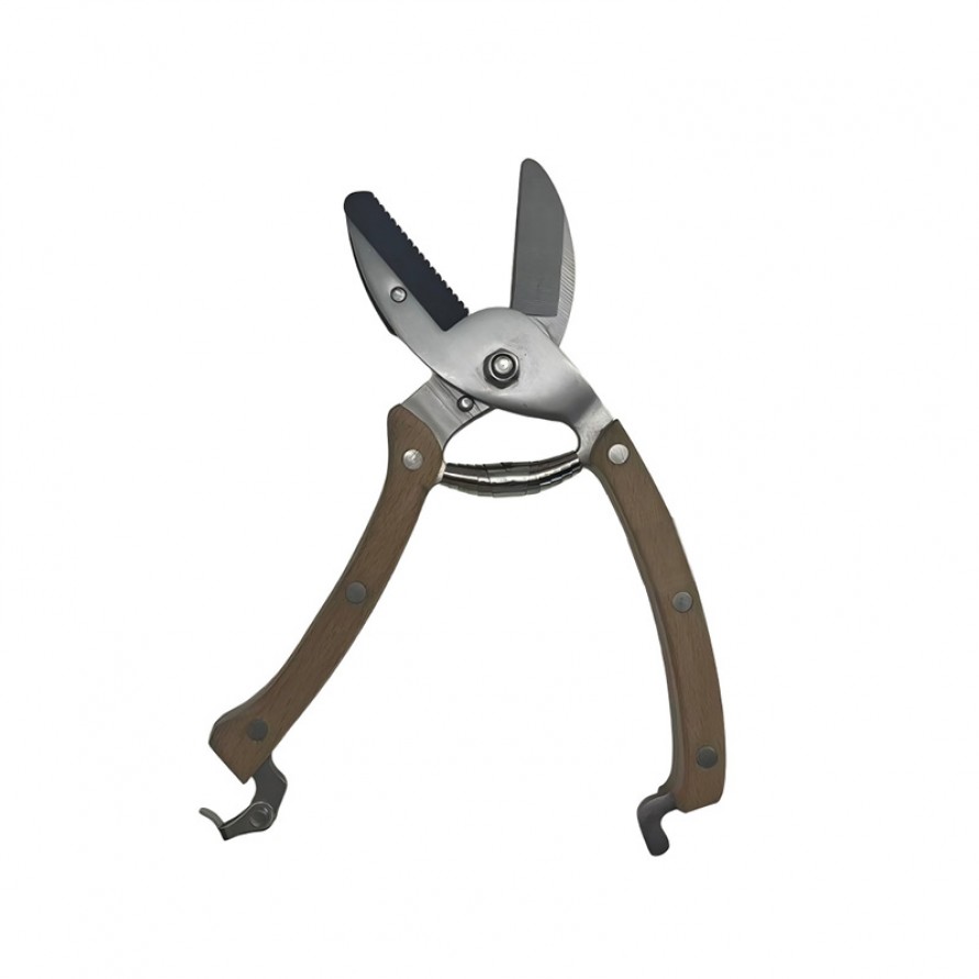 The blade is made of steel, and the handle is plastic. After use, promptly clean off any residual leaves, branches, and soil to keep the blade clean and dry to prevent rust. Wipe the blade with a dry cloth and periodically apply a small amount of rust-preventive oil to extend its lifespan. Avoid prolonged storage in damp environments or direct sunlight. For storage, it is recommended to place it in a dry toolbox.