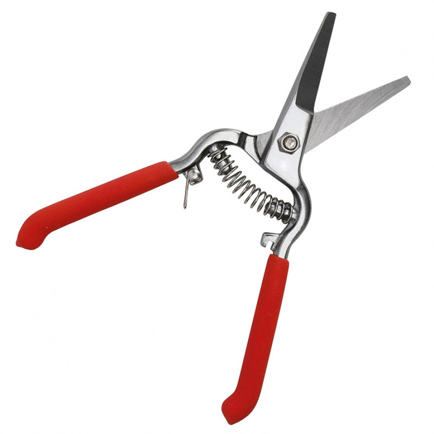 The blade is crafted from high-strength steel, polished for corrosion and wear resistance. The handle combines durable ABS and TPR materials for slip resistance. After use, clean resin and plant debris from the blade, wipe dry with a cloth, and apply a light coat of rust-preventive oil if desired. Store in a dry, well-ventilated area away from moisture to prolong service life and maintain sharpness.