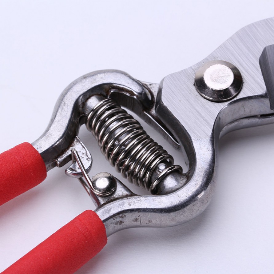 This pruning shears is specifically designed for horticultural trimming, suitable for cutting branches of grapevines, fruit trees, and various garden plants. The blades are crafted from high-hardness carbon steel and undergo precision polishing, ensuring sharp, smooth cuts with exceptional wear resistance and durability. The red plastic handles feature an ergonomic design that is slip-resistant and comfortable to grip, ensuring stable operation even during extended use. With an overall length of 8 inches and a balanced weight, they facilitate one-handed operation, making them an ideal tool for both home and professional gardening pruning tasks.