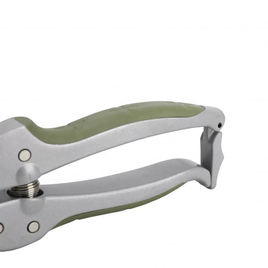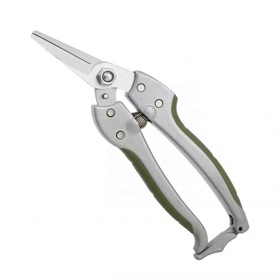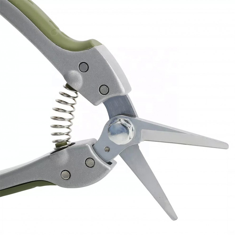 These pruning shears are specifically designed for trimming garden and houseplants, delivering precise cuts on branches. The blades are crafted from high-quality steel with a hard chrome-plated finish, enhancing corrosion resistance and cutting sharpness. The cast aluminum alloy handles combine with an ergonomic TPR non-slip grip for comfortable holding and stable operation, effectively reducing hand fatigue during extended use. The moss green finish offers both aesthetic appeal and practicality, making it an ideal choice for gardening enthusiasts and professional users alike.
