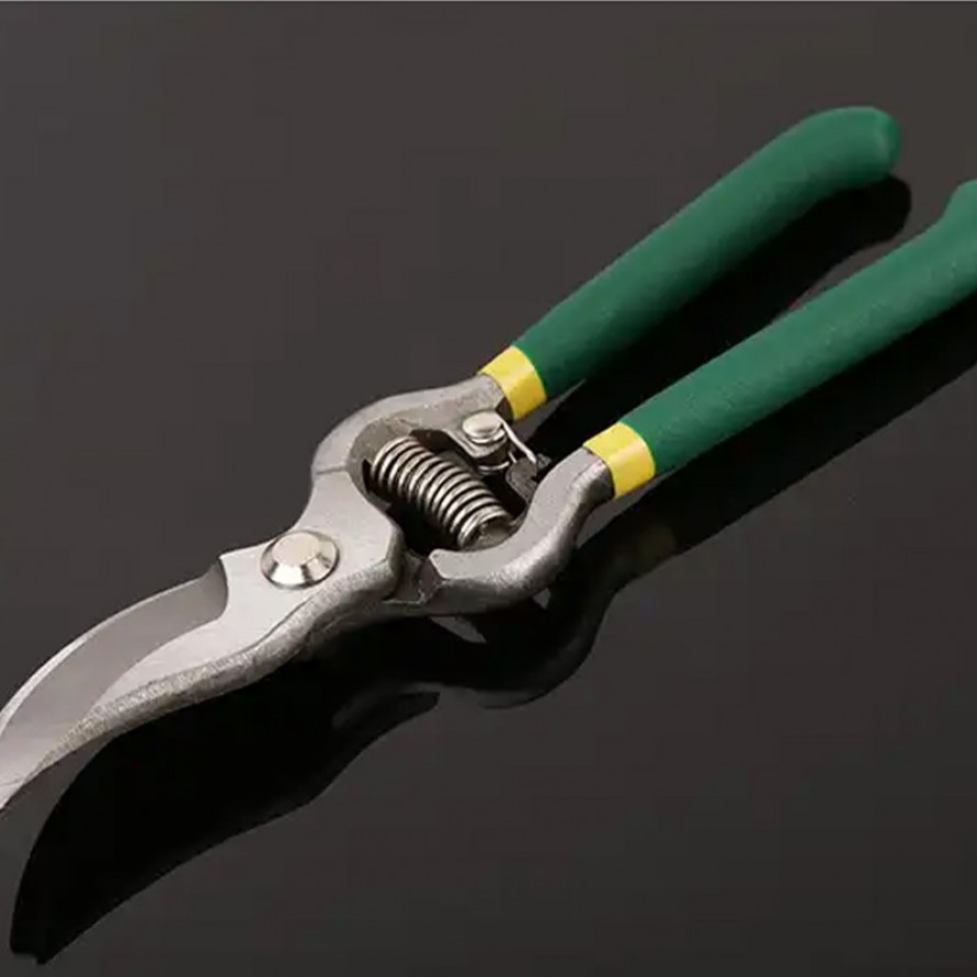 These pruning shears are specifically designed for use in home gardens, bonsai cultivation, and fruit tree maintenance. Featuring a dry-branch cutting mechanism, they allow for effortless cutting and deliver precise, smooth pruning results. The blades are crafted from heat-treated steel and undergo a polishing process, ensuring exceptional durability and long-lasting sharpness while resisting rust and dulling. The ergonomically designed handles are constructed from a composite of ABS and TPR materials; featuring a rubberized coating, they offer a non-slip, comfortable grip that minimizes fatigue during prolonged use. These shears are suitable for a wide range of gardening tasks, including the trimming of flower stems, bonsai, and small fruit trees.