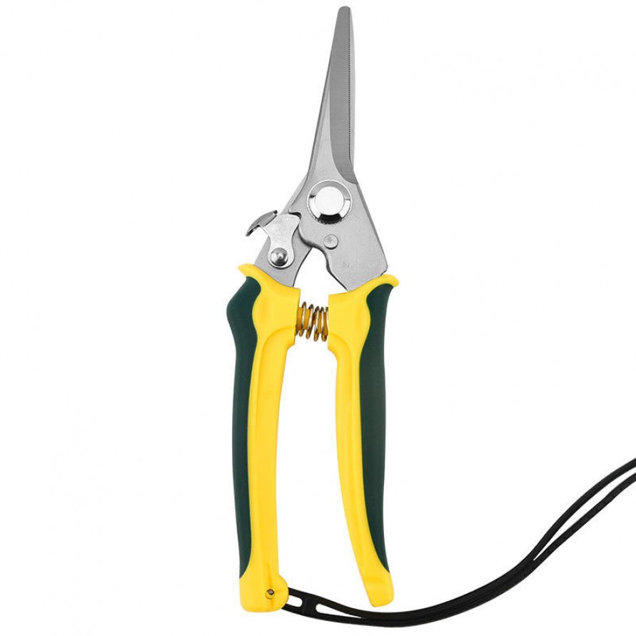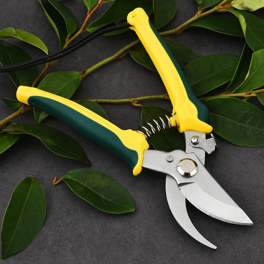 The blade is made of stainless steel with a PTFE coating for enhanced durability. The handle is constructed from non-slip plastic. After use, clean any sap or soil from the blade and keep it dry. Apply a small drop of lubricating oil to the pivot point to ensure smooth operation. When not in use for extended periods, store in a dry, well-ventilated area to prevent rust or damage caused by moisture.