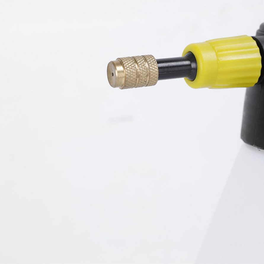 The sprayer bottle is made of durable plastic, while the nozzle is brass. After use, empty any residual liquid and rinse the nozzle and internal tubing with clean water to prevent clogging and corrosion. Avoid prolonged exposure to sunlight or high temperatures to prevent plastic degradation. Store in a dry, well-ventilated area. Periodically inspect the nozzle and pump body to ensure long-term functionality.