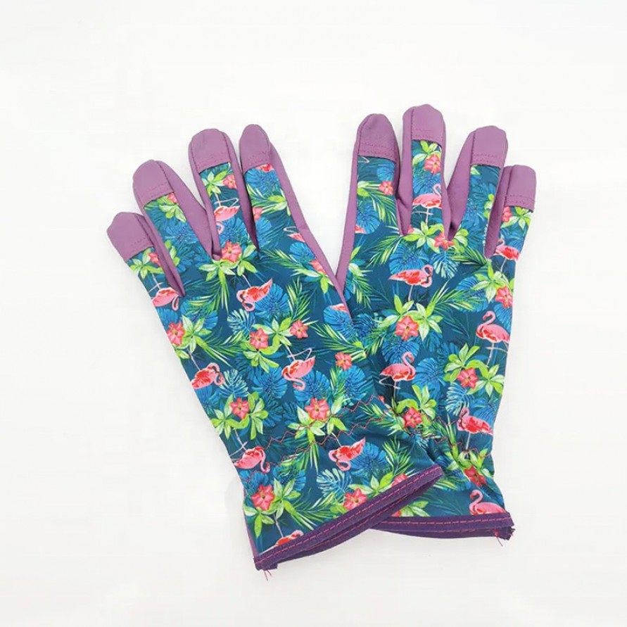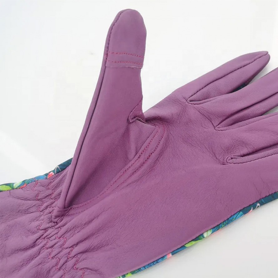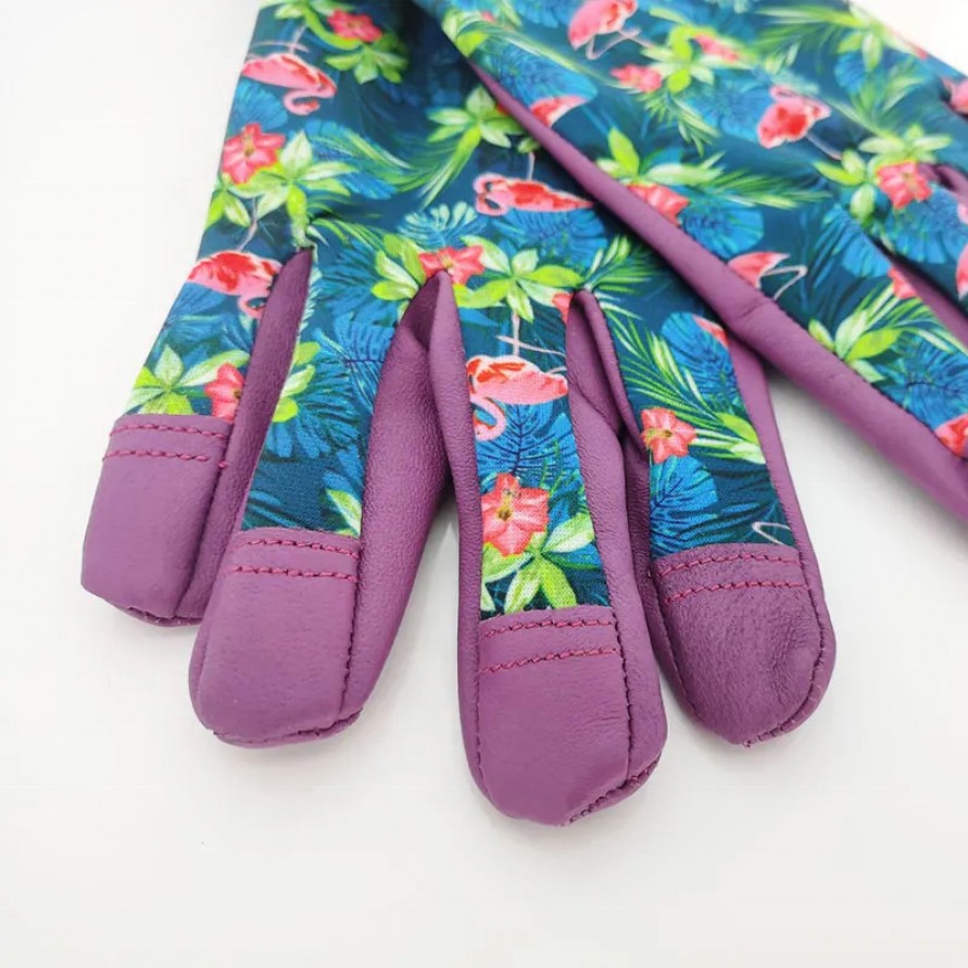 These gardening gloves combine natural cowhide with synthetic materials. The palm section is crafted from durable cowhide, offering exceptional abrasion resistance and grip—making them ideal for pruning, planting, and handling gardening tools. The back of the hand features a stretchy, printed fabric design that is soft and breathable, enhancing both comfort and flexibility; it also boasts an attractive floral pattern, making the gloves perfect for everyday garden chores and home gardening. Designed to fit the contours of the hand, these gloves allow for agile movement while effectively protecting your hands from scratches and minor impacts.