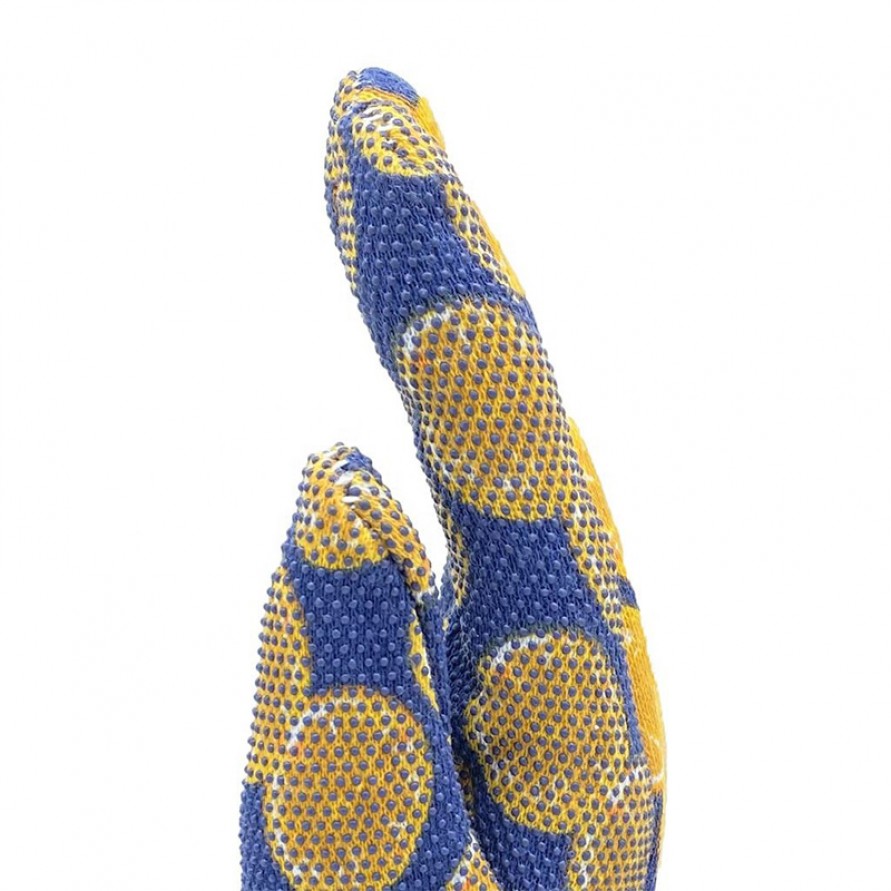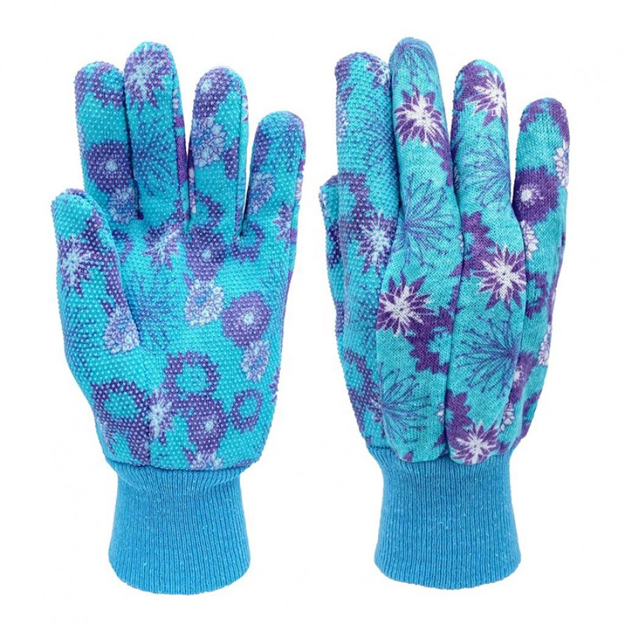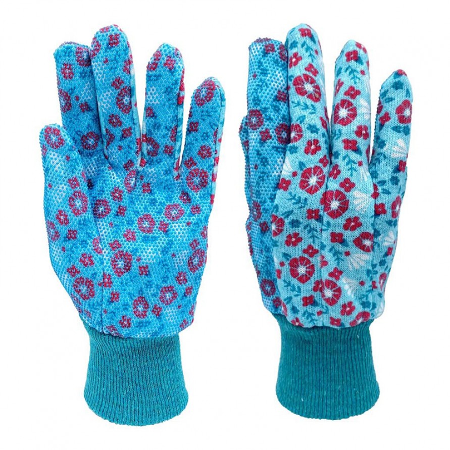 These gardening gloves are crafted from soft, breathable cotton jersey fabric, offering exceptional comfort and airflow—ideal for extended periods of garden maintenance and outdoor work. The palms and fingertips feature a PVC dot pattern that effectively enhances grip and improves abrasion resistance, providing reliable hand protection even when handling tools or working with coarse vegetation. Designed with elastic knit cuffs, the gloves fit snugly around the wrists to prevent dust and debris from entering while ensuring full freedom of movement.