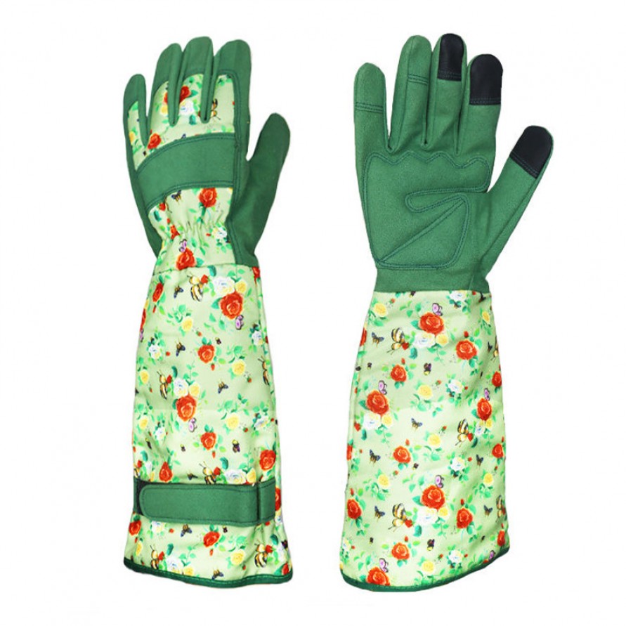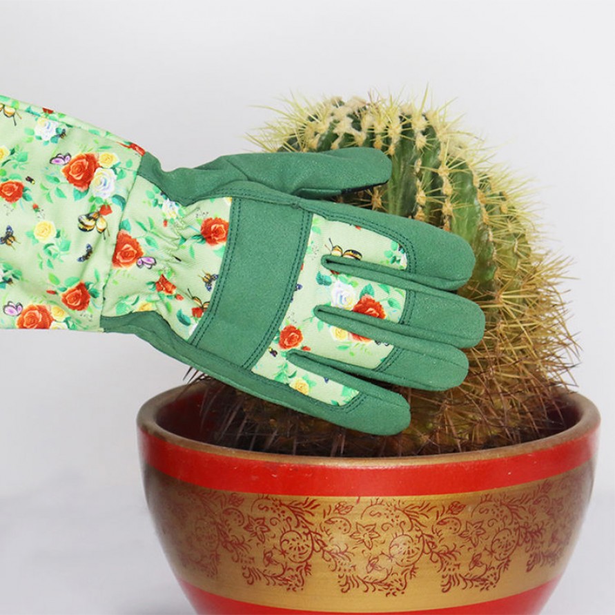 These gardening gloves are specifically designed for picking and pruning, featuring a reinforced palm construction that effectively prevents punctures and protects the hands. They are particularly suitable for trimming thorny plants like roses or handling branches. The glove's outer panel utilizes high-quality microfiber—soft yet durable—ensuring excellent tactile sensitivity and flexibility for secure grips on gardening tools. The long-sleeve design extends over the wrist and forearm, providing comprehensive protection for garden work, orchard harvesting, and other horticultural tasks.