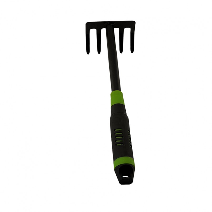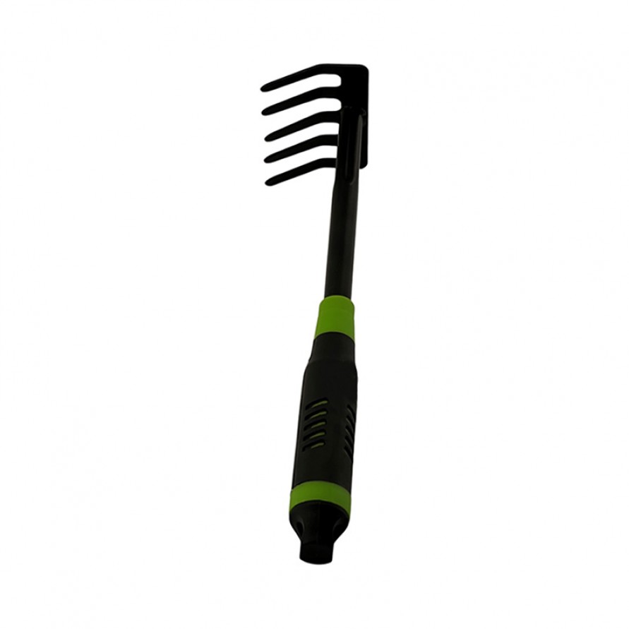 This garden rake is an essential hand tool for garden care, specifically designed for loosening soil, turning over earth, tilling, and clearing weeds. It is suitable for home gardens, courtyards, and small-scale agricultural tasks. The rake's tines are arranged for efficient soil preparation while minimizing damage to plant roots. Its ergonomic handle ensures a comfortable grip and effortless operation, making it ideal for both beginners and experienced gardening enthusiasts. Built with sturdy construction, this tool combines practicality and reliability, making it an ideal choice for daily garden maintenance and plant care.