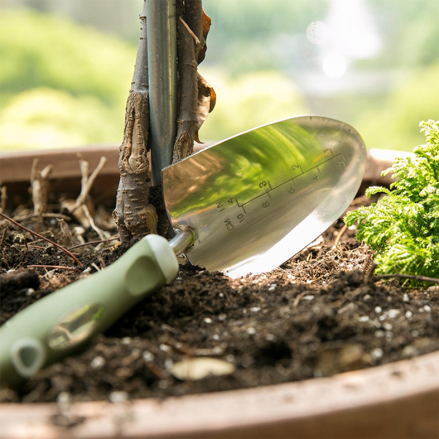 The stainless steel blade resists corrosion and wear, ensuring long-term outdoor gardening use. The TPR soft handle offers flexibility, durability, and a comfortable feel. After each use, promptly clean soil and moisture from the trowel and store it dry to prevent metal oxidation or handle deterioration. For extended storage, keep in a well-ventilated, dry location. If necessary, apply a small amount of rust-preventive oil to the stainless steel surface to extend the tool's lifespan.