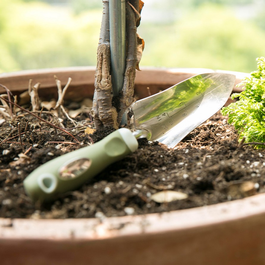 Gardening trowel with non-slip rubber grip
