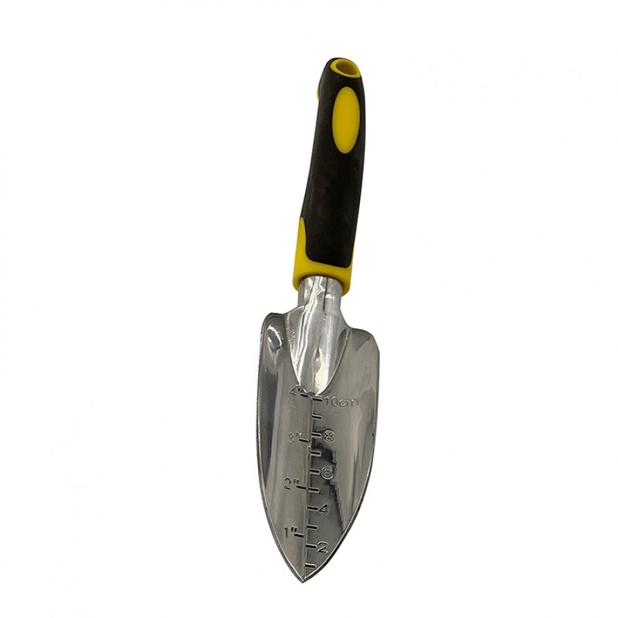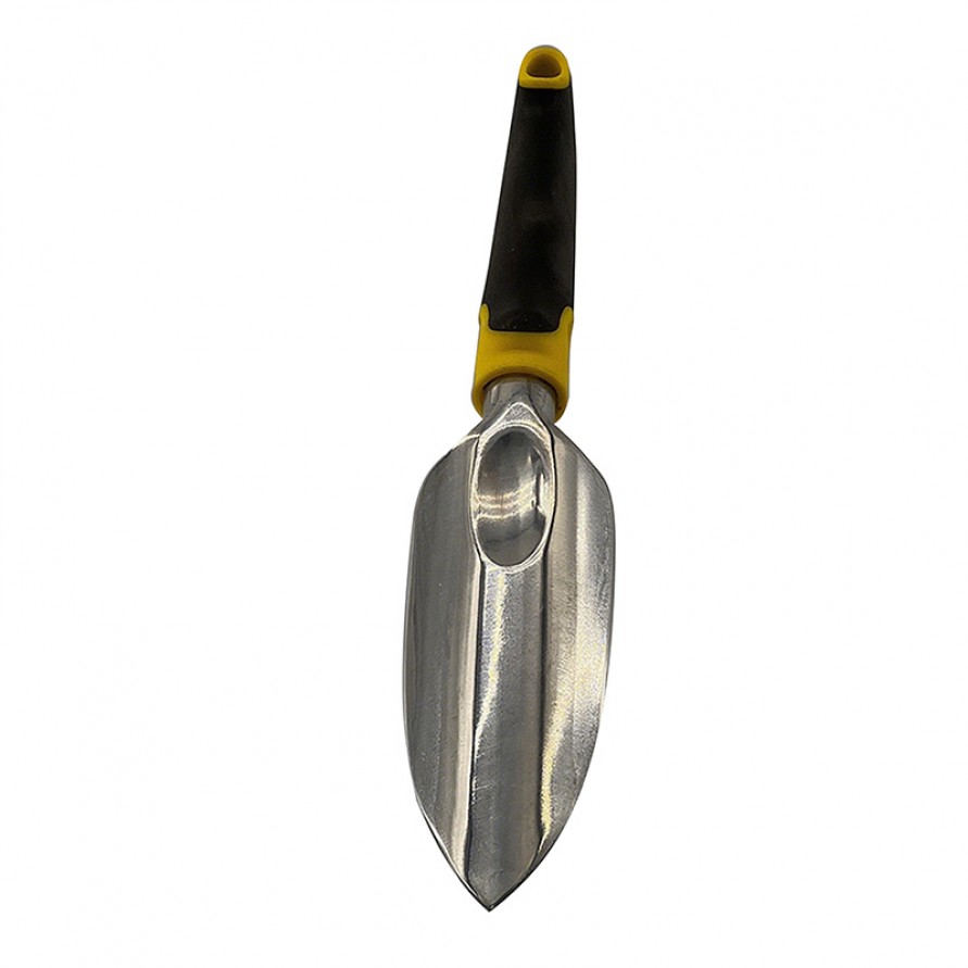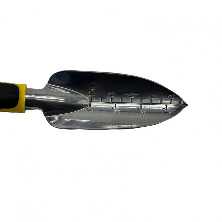 The trowel head is made of aluminum alloy, offering lightweight durability and corrosion resistance. The handle is constructed from sturdy, non-slip plastic. After use, promptly clean soil, mineral deposits, and plant debris from the trowel head. Store in a dry location to prevent aluminum oxidation or handle moisture absorption. For extended storage, place in a well-ventilated, dry area. Periodically wipe the trowel head surface to maintain its finish and longevity.