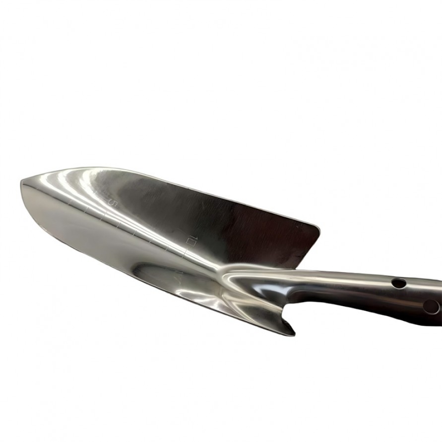 Mirror-polished stainless steel transplanting trowel